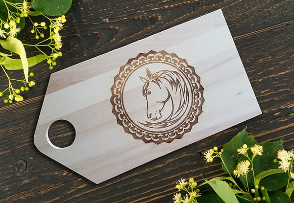 Brettchen mit Lasergravur – Motiv „Pferdekopfembleem“